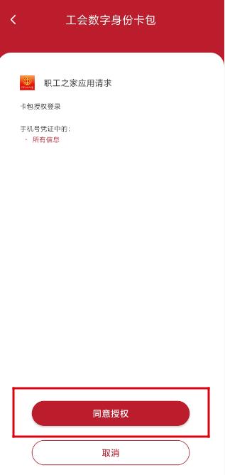 (4) 工会数字身份卡包点击“同意授权”。