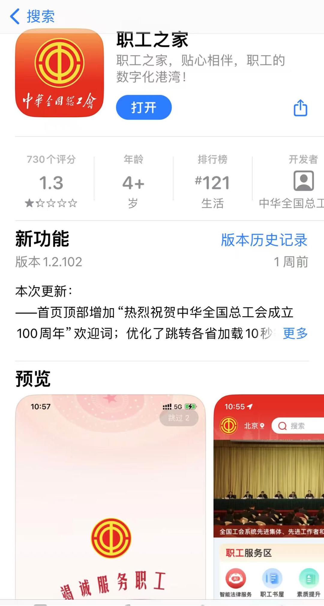 1. 打开手机应用商店搜索并下载“职工之家”APP。