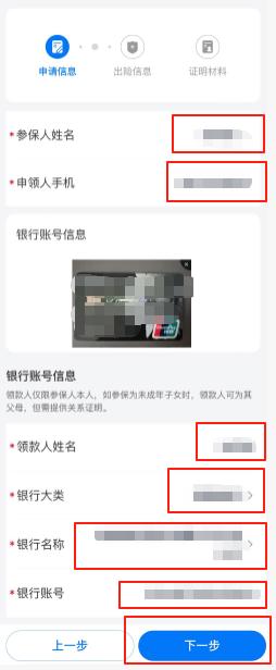 6. 进入快速申领页面,根据页面提示填写个人申请信息,红色星号为必填项,依次填写,点击“下一步”;填写完毕后,点击“提交”。