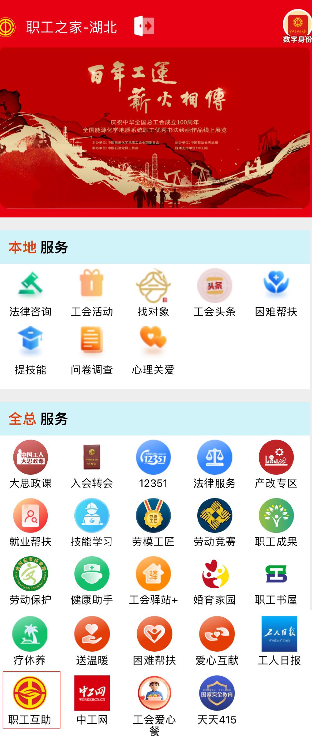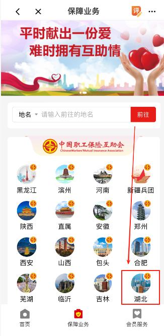 3. 点击首页“职工互助”图标后,点击“湖北”图标。