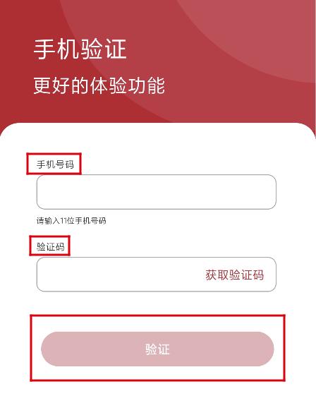 (2) 输入11位手机号获取验证码,输入验证码后点击“验证”。