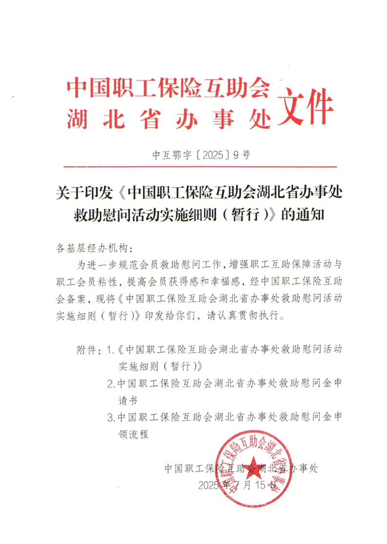 中国职工保险互助会湖北省办事处救助慰问活动实施细则(暂行)