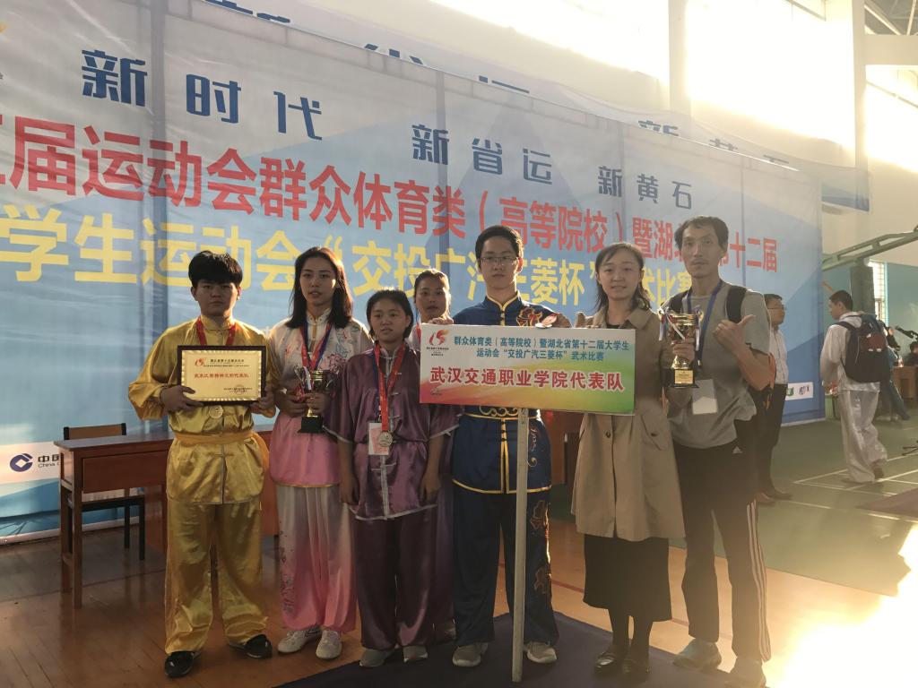 近日,我校武术队参加湖北省第十五届运动会群众体育类武术比赛的战报传来,共获两个集体奖和十一个单项奖,斩获一金两银两铜。这是自2011年入职武汉交通职业学院以来,公共课部体育教研室的张汇敏老师第七次带队参赛并获奖。