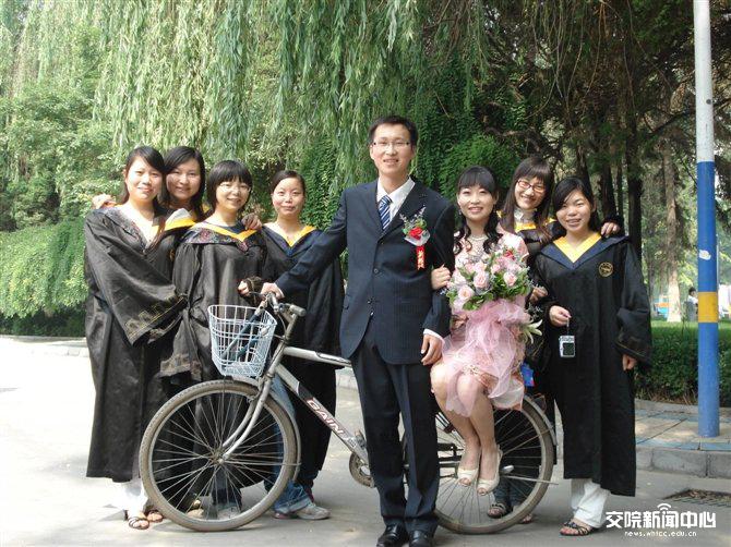 就是这样看似平静如水的一个人,在2008年6月研究生即将毕业之际,却做了一件轰动兰大校园的光辉事迹——与相恋两年的同校女友举办校园婚礼!穿着借来的西服、领带、皮鞋,骑着租来的一辆自行车,带着简单装扮过的新娘子在校园里“风光”走了一圈。没有婚纱礼服,没有司仪配乐,没有婚车酒席,只邀请了几个要好的同窗,在校外的小饭店简单举办了一桌“婚宴”。这是一场真正意义上的“裸婚”,周陈焱对此铭记毕生,却对爱人满心愧欠。